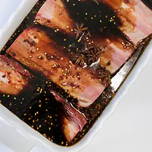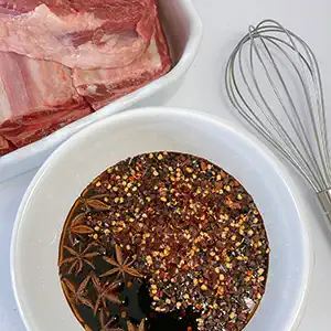In a bowl, whisk The Original Maui Sauce / Marinade, sesame oil, red pepper flakes, minced garlic and star anise pods. Place short ribs in a large deep baking pan, with the meat side facing down. Do not overlap the short ribs. Add Maui Sauce mixture and allow ribs to marinade at least 8 hours, preferably overnight. Half way through the marinating time, turn ribs over. *Alternatively, lay 2 beef ribs each in 2 large freezer bags. Add half the marinade to each freezer bag. Squeeze the air out, seal and marinade as described above. |