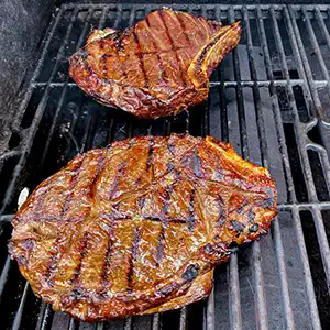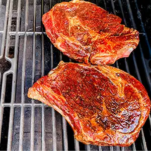 Move steaks to the heated side and grill until golden brown and slightly charred, approximately 3-5 minutes. Flip steak over and repeat. |