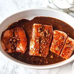 Preheat the oven to 375° F. Combine mustard, maui sauce, ginger, honey and sesame oil. Marinate the salmon for 30 minutes in the sauce. |
